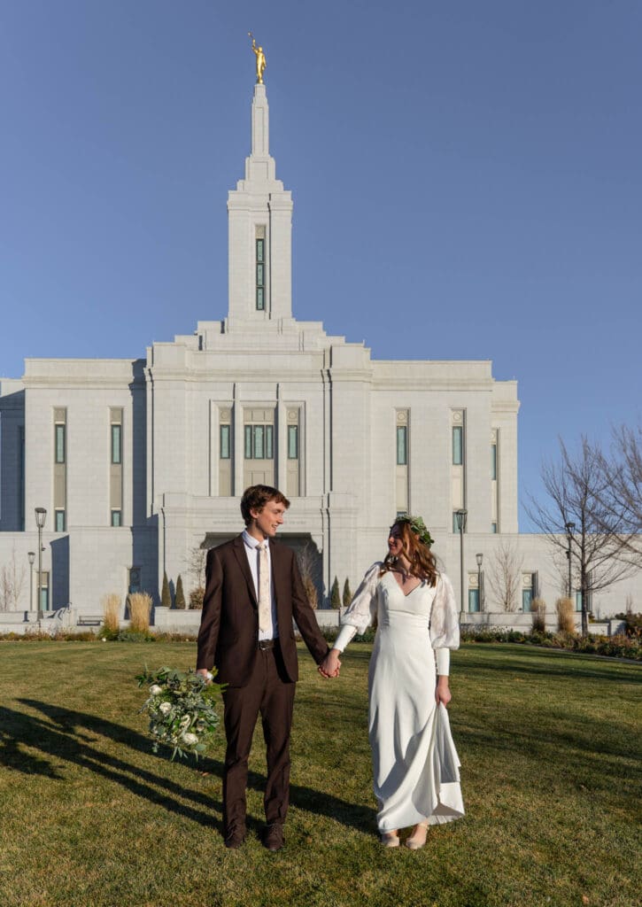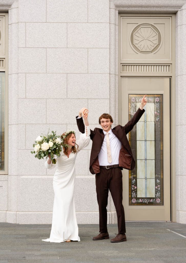 I always prioritize the elderly in the family and the kids to photograph with the bride and groom first. This helps the most vulnerable be able to leave first, especially in not so great weather. If you hire me to take your temple exit wedding photos, I’ll make the process seamless for you and your family!